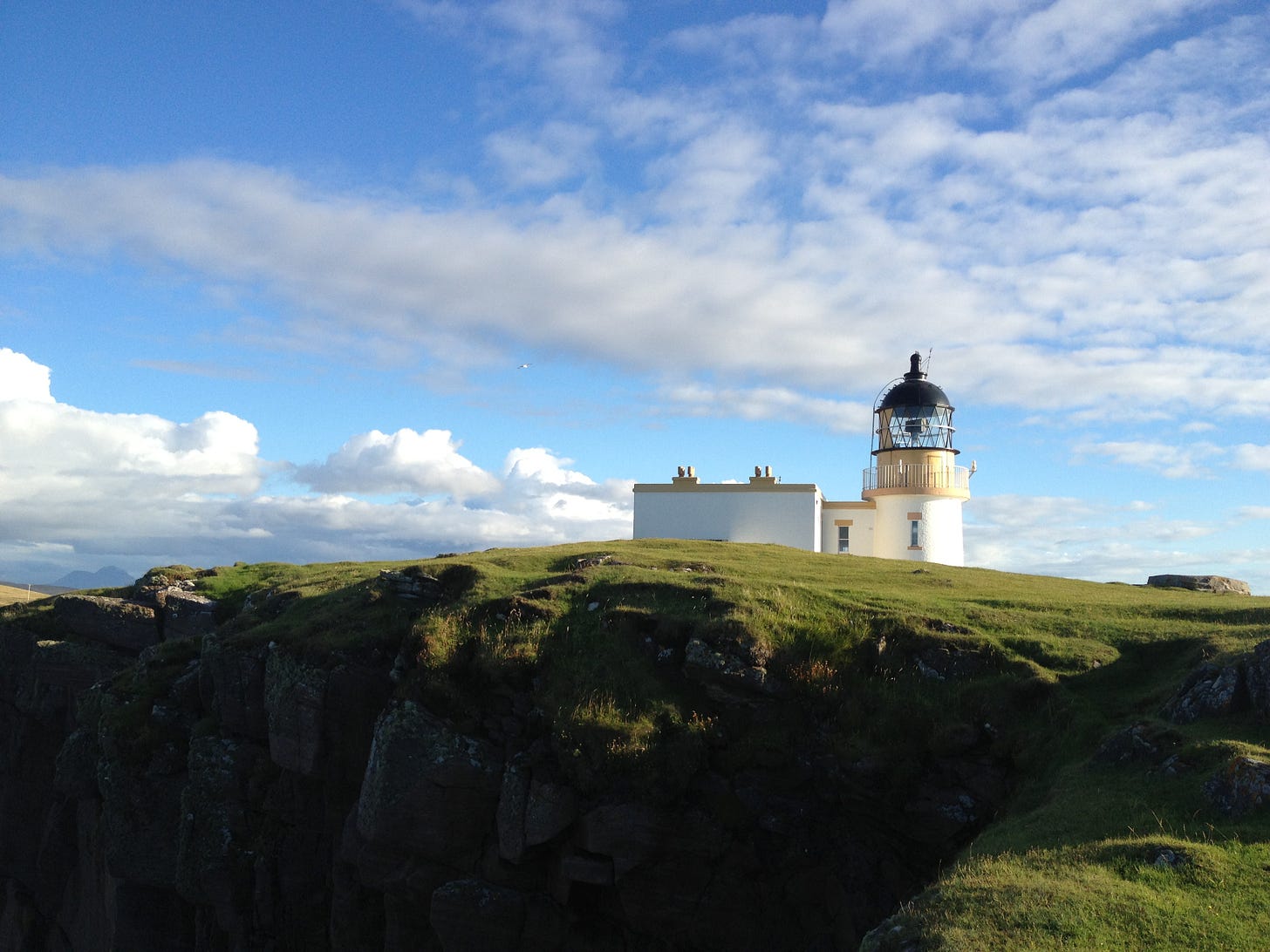 I’ll never forget the lighthouse at Muckle Flugga, Shetland, the most northerly light in the UK. I went there around 2010 or 2011, walked an absent path through bog against an unforgiving wind, the landscape weirdly treeless. Lunar. Late afternoon, dark soon.